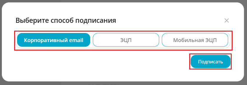 Если у сотрудника нет личного ключа ЭЦП, предусмотрена возможность подписания с помощью корпоративного email. Подробно данный тип подписи описан в инструкции.