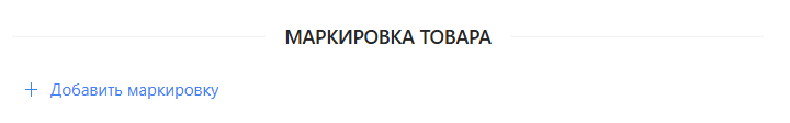 Для добавления в товарную позицию информации о маркировке товара, необходимо нажать кнопку "+ Добавить маркировку" в подразделе "Маркировка товара"