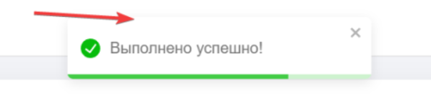 В случае успешной отправки отмены по документу появится сообщение "Выполнено успешно":