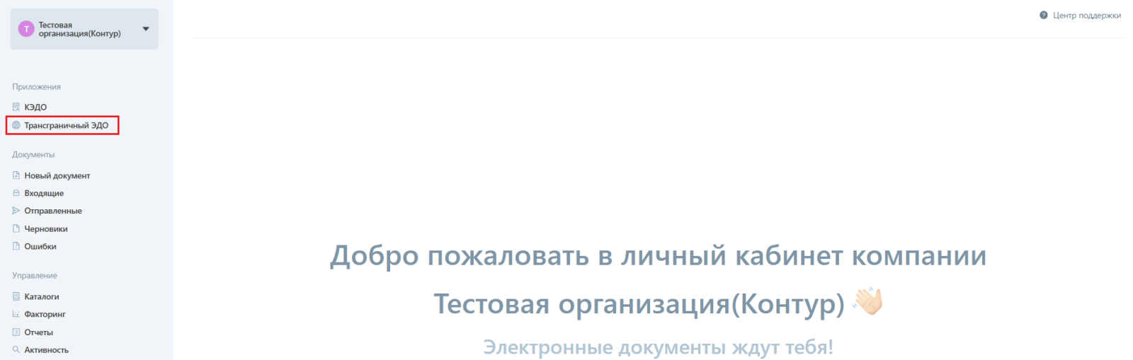 Если ваша организация подключена к трансграничному обмену с РФ, перейти в раздел ТЭДО можно выбрав пункт "Трансграничный ЭДО" или по адресу: https://app.edn.by/web-international.