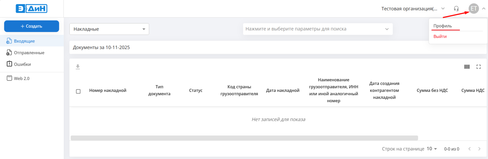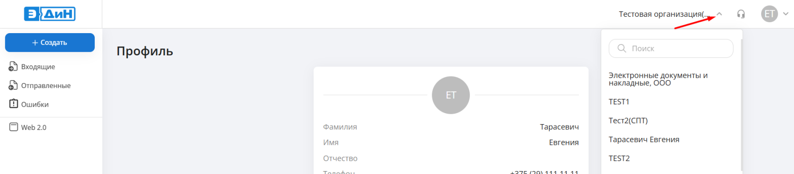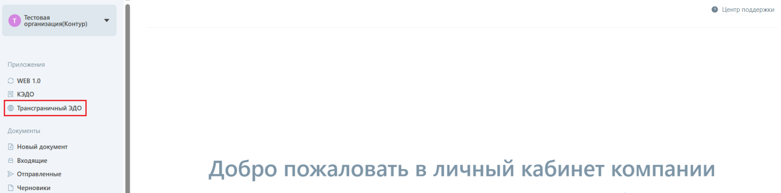 Если ваша организация подключена к трансграничному обмену с РФ, перейти в раздел ТЭДО можно выбрав пункт "Трансграничный ЭДО" или по адресу: https://app.edn.by/web-international.