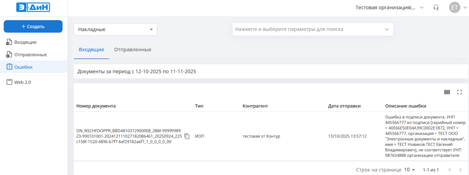 Электронные документы, которые попали в ошибки можно просмотреть на вкладке “Ошибки”.