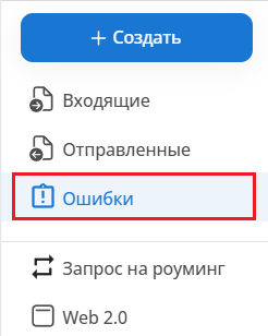 Все документы, которые по какой-то причине не были отправлены из-за ошибок, будут отображаться во вкладке "Ошибки" на главной панели личного кабинета: