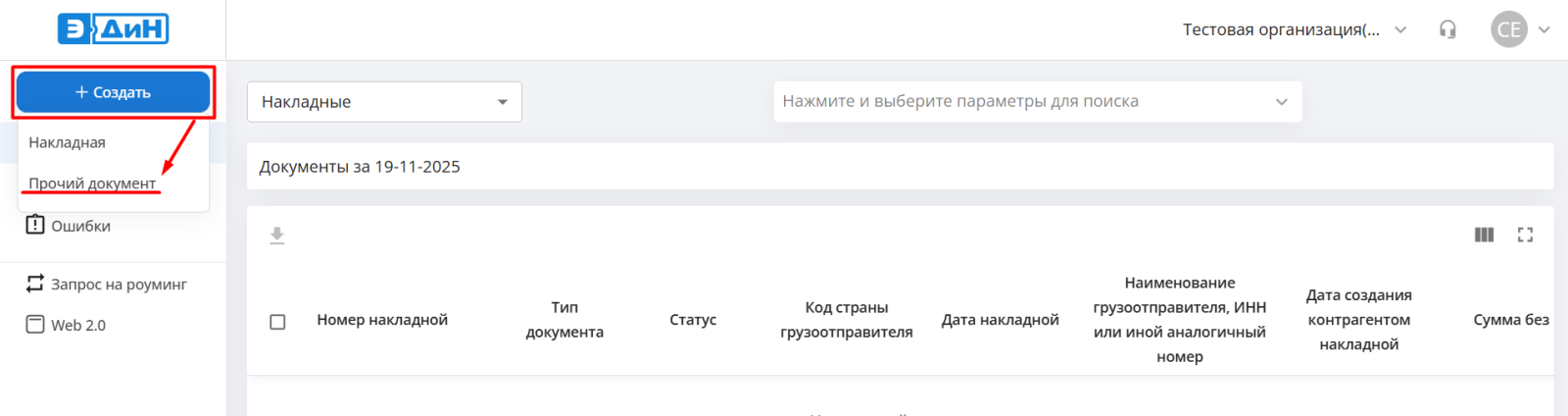 Для создания нового документа необходимо нажать на раздел "Создать", выбрать тип "Прочий документ".