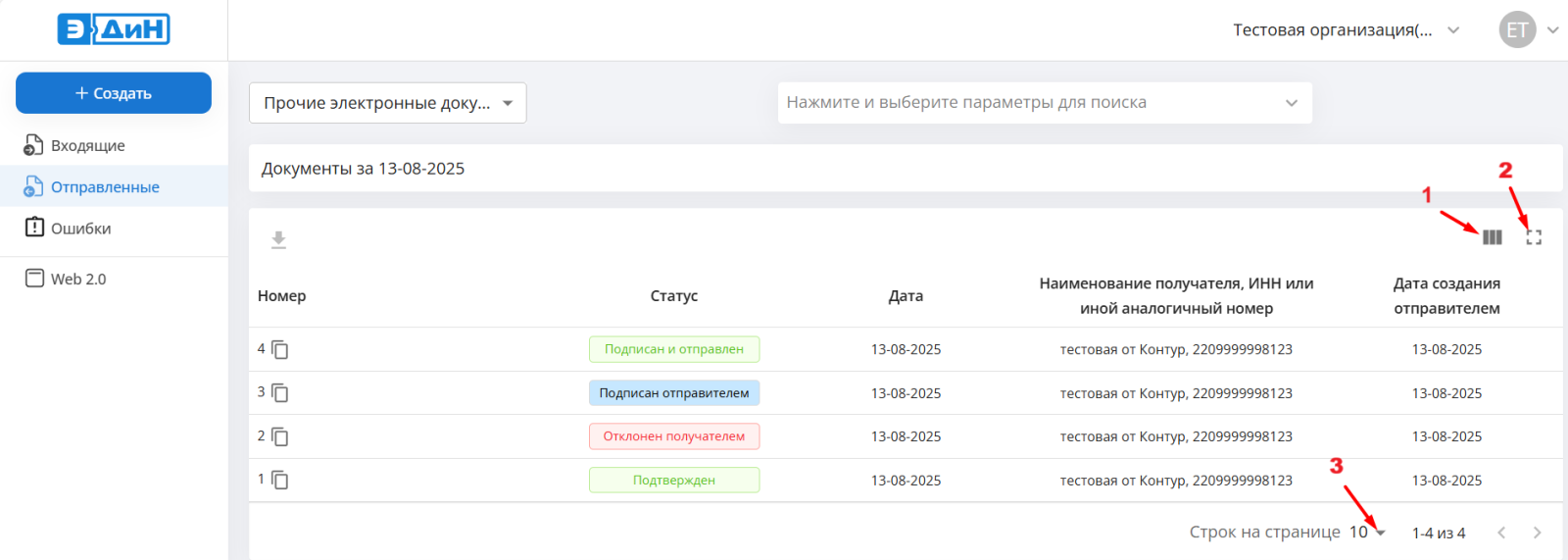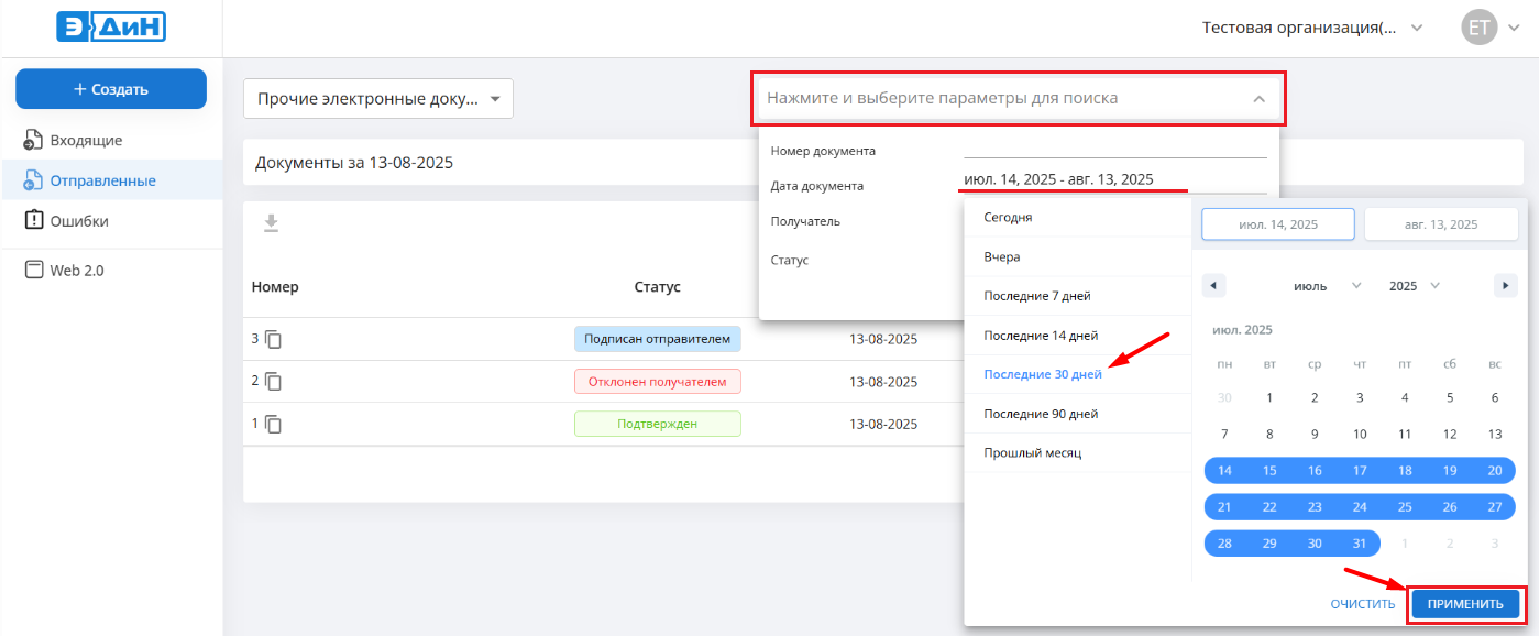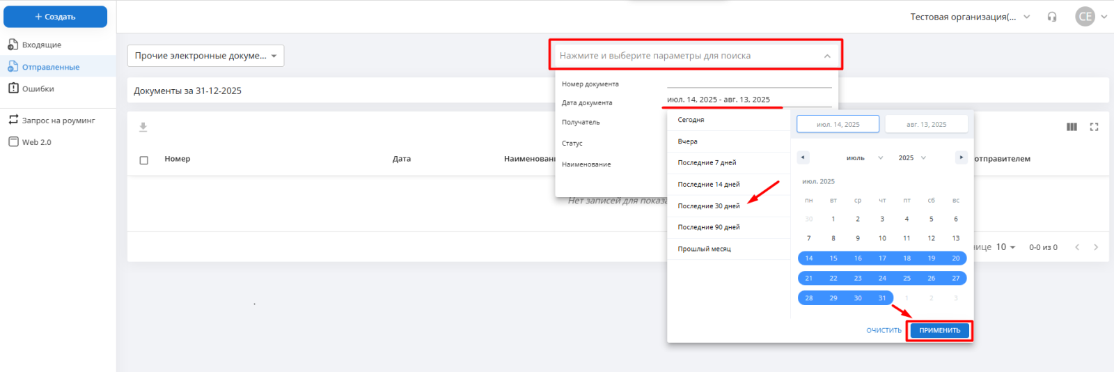 По умолчанию, отображаются только документы, которые были отправлены за текущий календарный день.