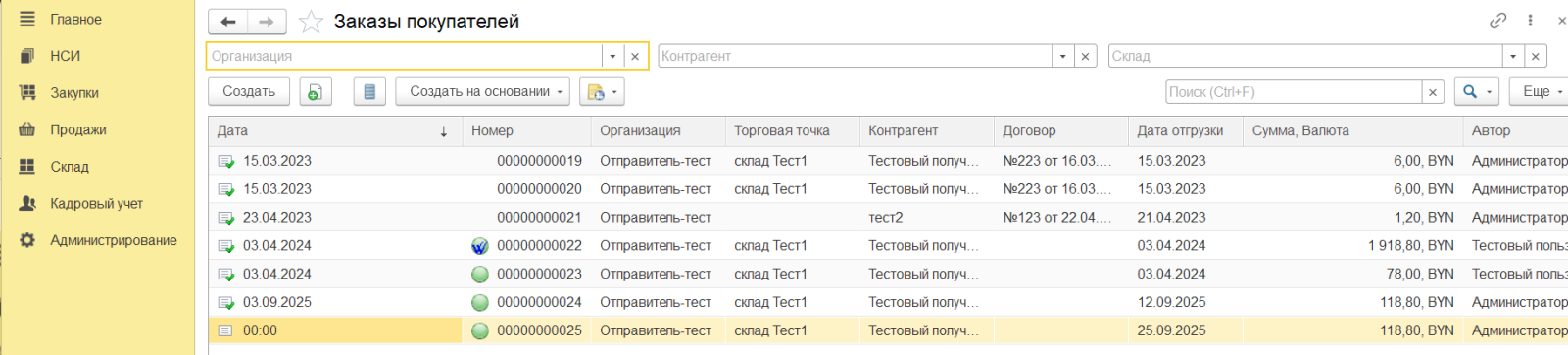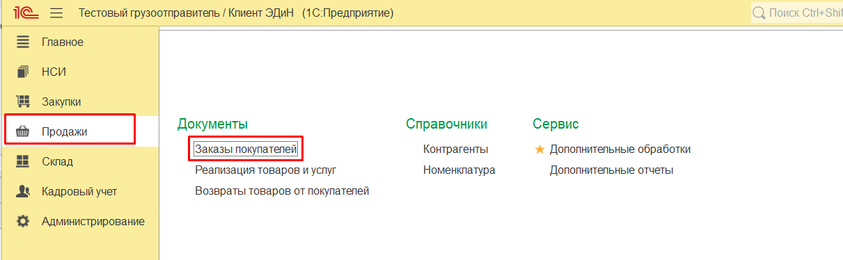 Полученные и загруженные заказы также можно посмотреть в разделе "Продажи"->"Заказы покупателей".