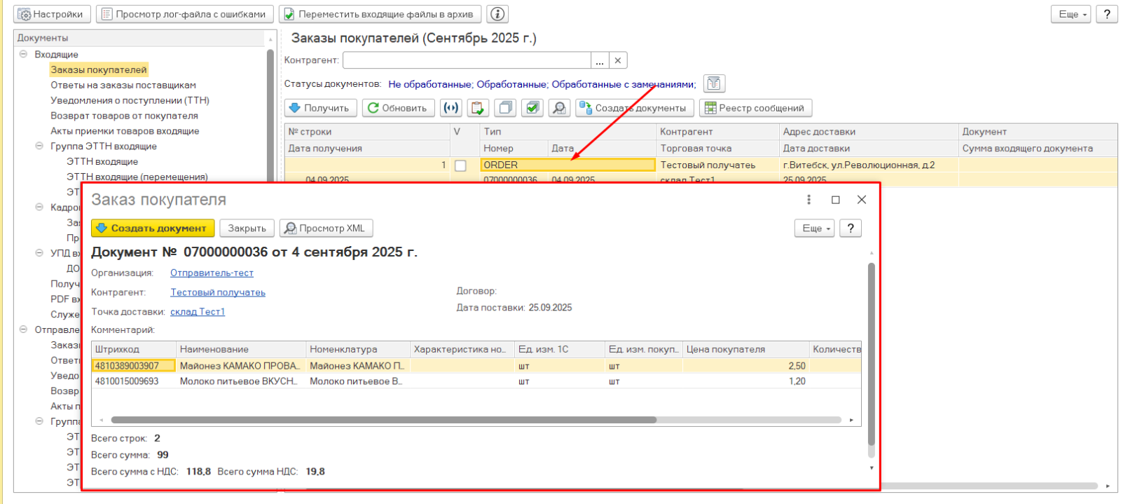 Примечание: в этой инструкции рассмотрен обмен заказами с формированием всех служебных сообщений (необязательных, в том числе).
