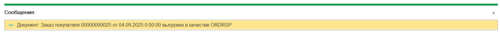 Если выгрузка ответа прошла успешно, в 1с будет получено соответствующее уведомление: