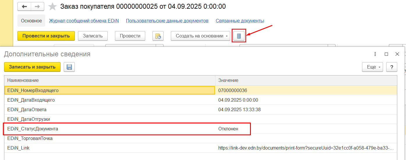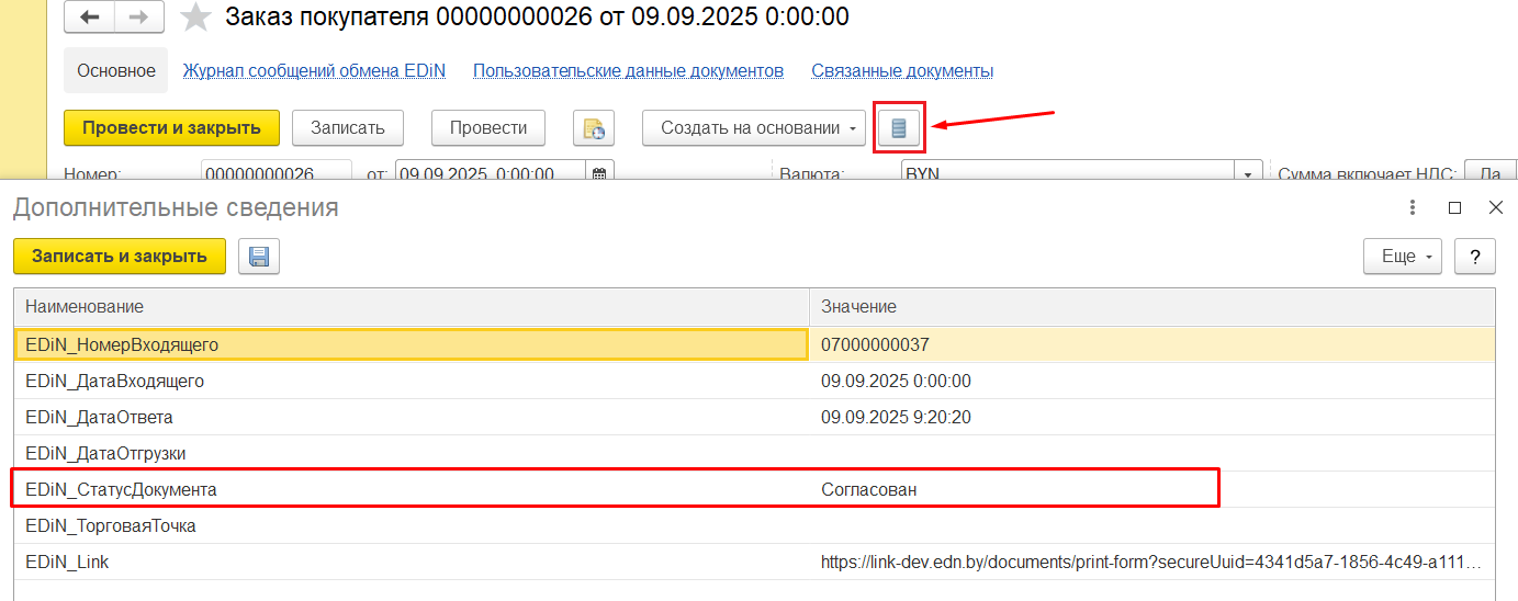 Примечание: входящий заказ и ответ на заказ - это один и тот же документ.
