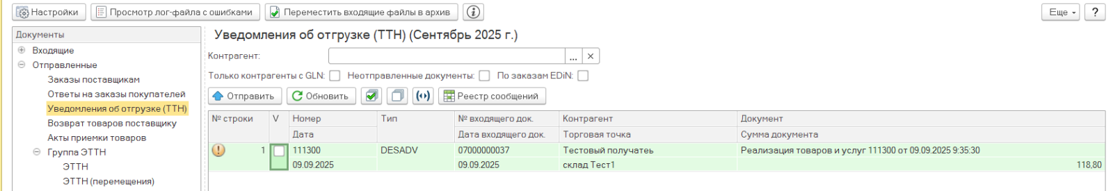 После успешной выгрузки уведомления об отгрузке статус этого документа в учётной системе будет с восклицательным знаком .
