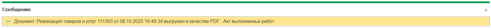 При успешной выгрузке в модуле отобразится подтверждающее сообщение.