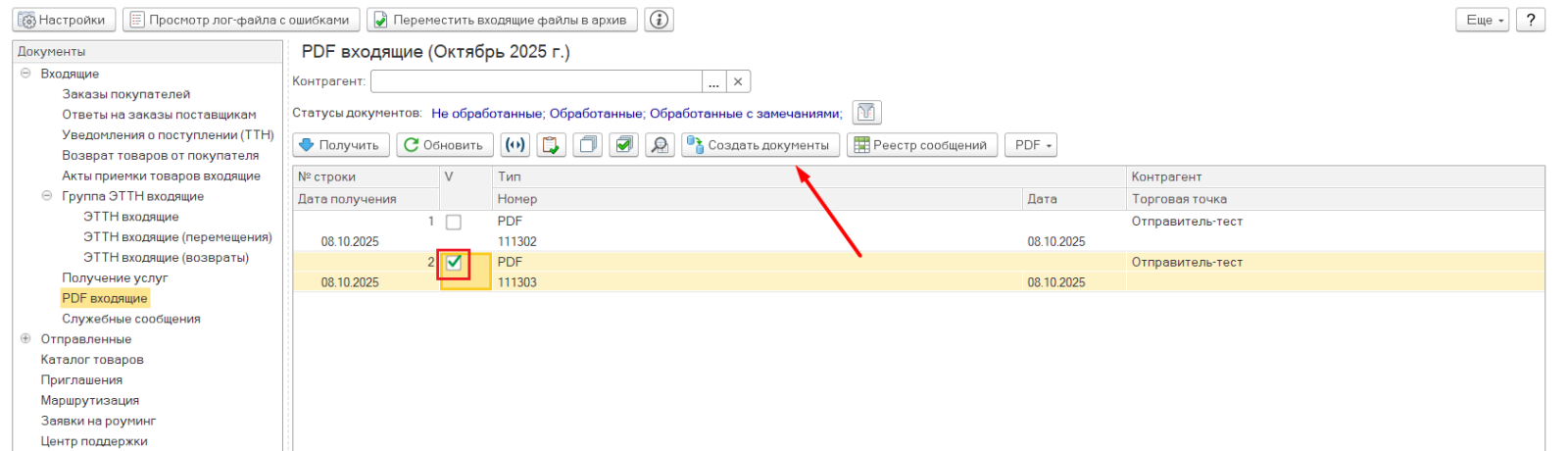В появившемся списке выбрать нужный документ и нажать на кнопку "Создать документы".