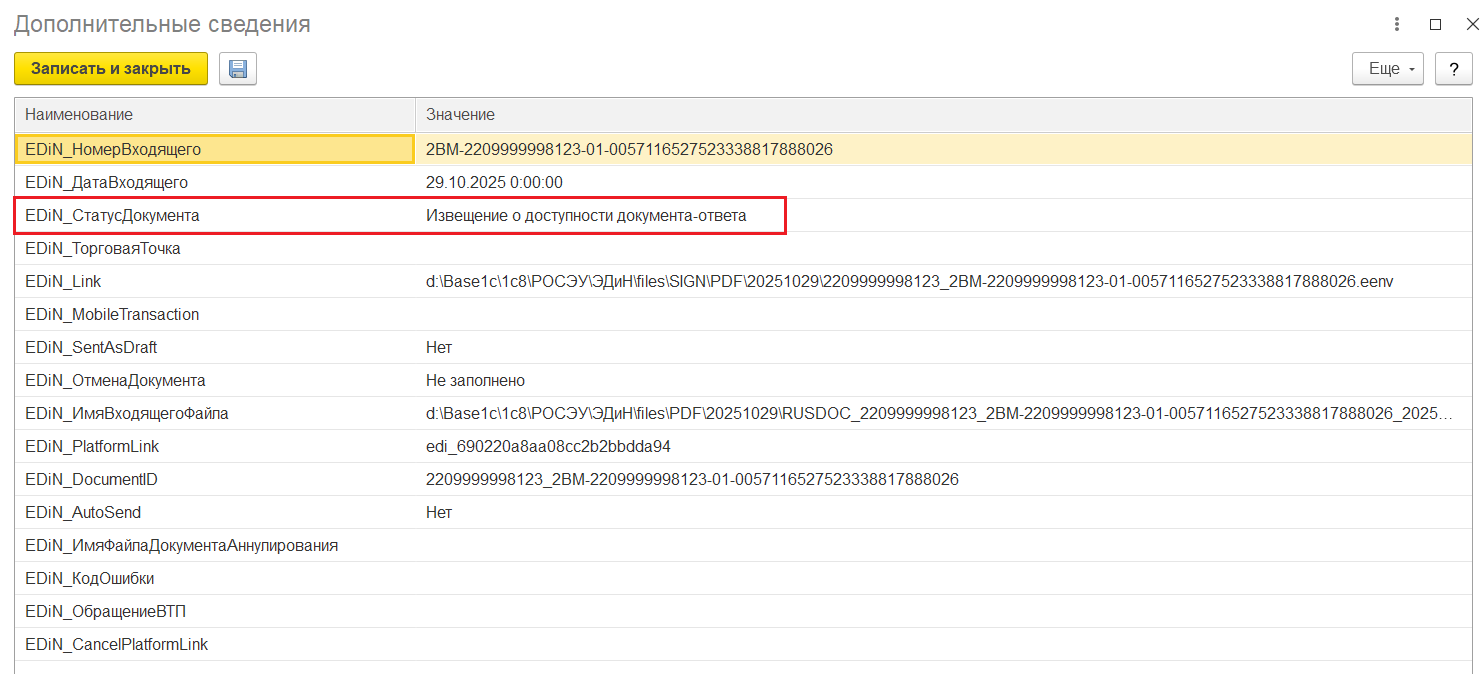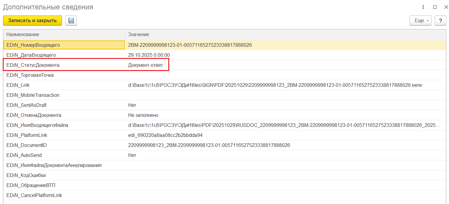 Пиктограмма документа изменится на следующую: . В дополнительных сведениях будет статус "Документ-ответ"