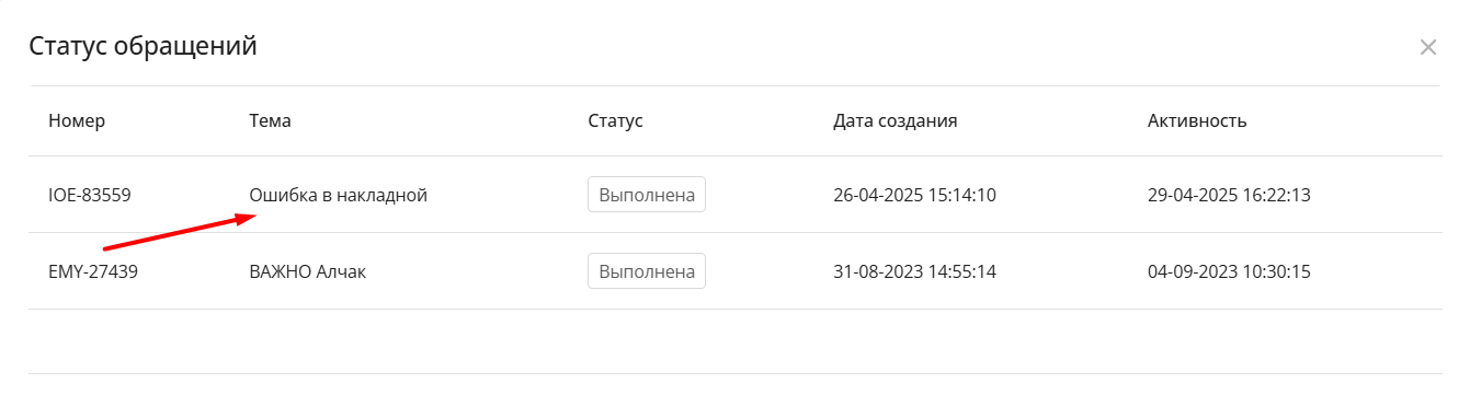 В открывшемся окне можно найти интересующую заявку. По нажатию на строку откроется форма просмотра ранее созданного обращения, на которой можно написать ответ или задать уточняющий вопрос.