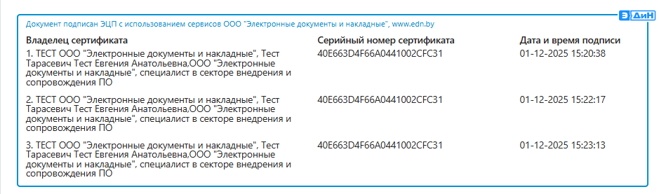 Бывают ситуации, когда для отправки документа требуется наличие подписей нескольких сотрудников (двух и более). Например, ответственного лица, руководителя и т.д. Для таких случаев предусмотрена отправка Прочего электронного документа с множественной подписью. Особенности её применения в личном кабинете пользователя ЭДиН описаны в данной инструкции.