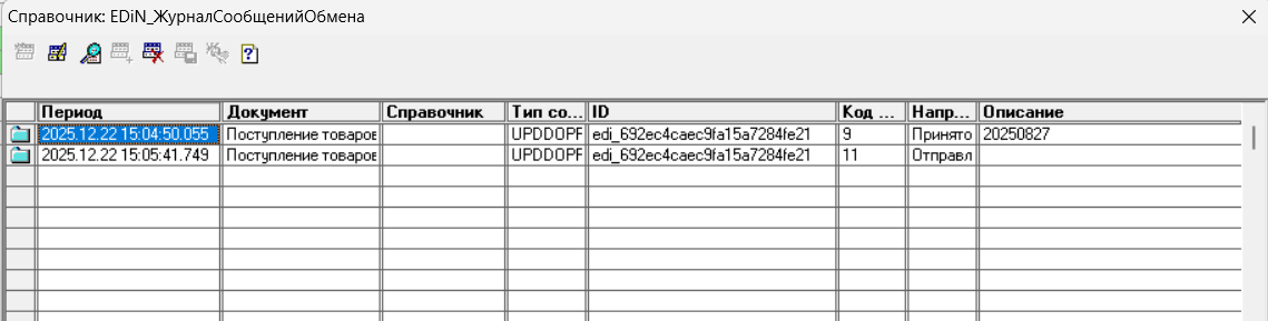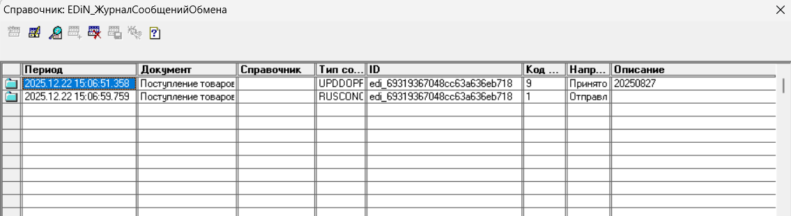 Работа с трансграничными накладными в модуле для 1с7 происходит по схеме EasyWbl. По этой причине в реестре будут только основные служебные сообщения. Итоговый реестр служебных сообщений для Грузополучателя.